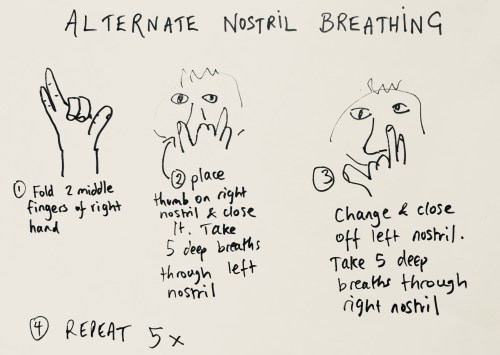 3. Open the right nostril and close the left with your two fingers. Take 5 deep, slow in and out breaths.