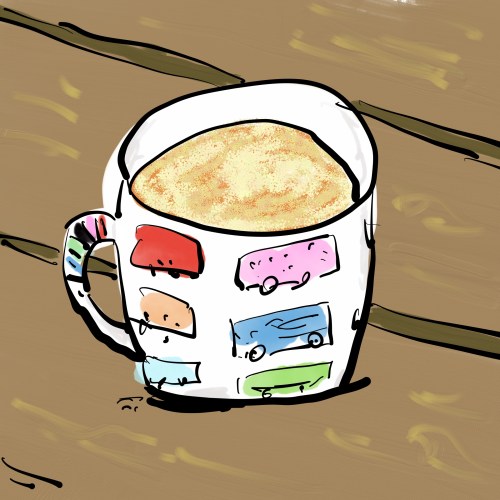 * Look at the cup and tea and appreciate its beauty