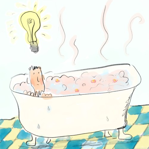 Perhaps this is about those moments when we’re not thinking about anything and an inspiration suddenly seems to pop into our heads, like Archimedes in the bath, the light of wisdom finding the space to shine through the woods of our thoughts and learned knowledge.