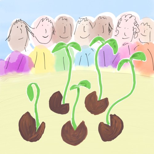 Rather than presenting these things as ‘bad’, I drew them as seed shells that are there to protect us and help us navigate through life until we are ready to grow out of them.